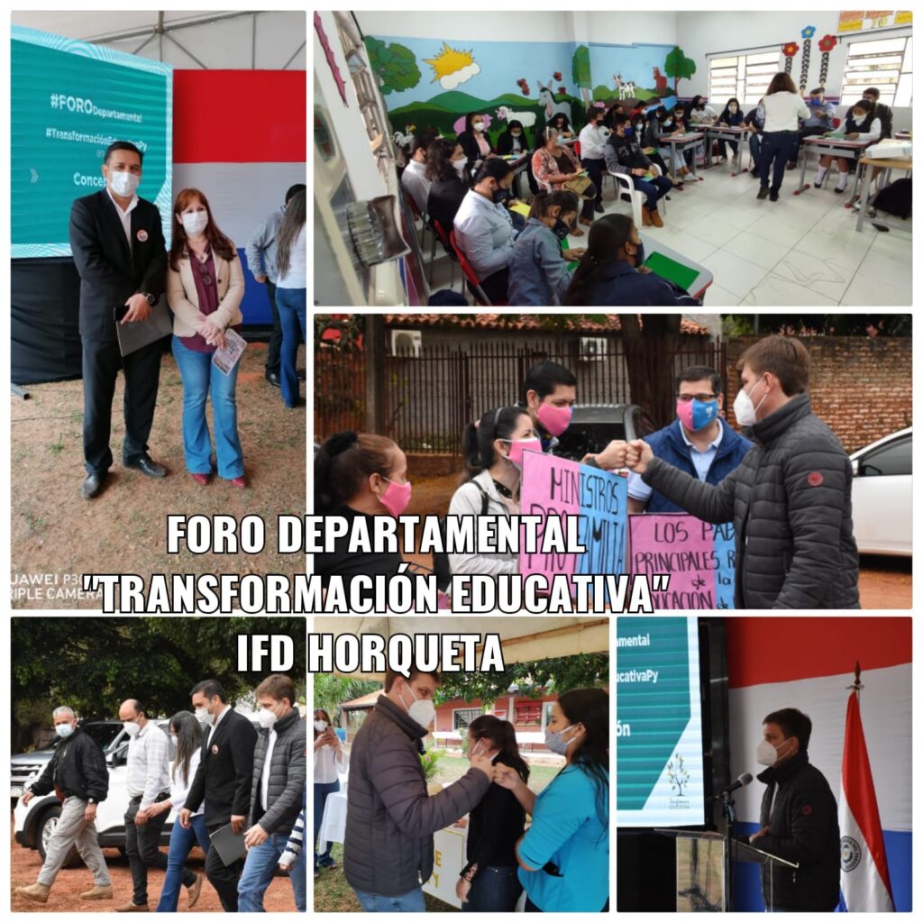 En el evento participaron referentes de cada área que forman parte del sistema educativo departamental tales como: director del IFD Horqueta, Directora Departamental de Educación de Concepción, supervisores educativos, estudiantes, padres, representantes de asociaciones, así como también de la sociedad civil. Se vivió un marco de discusión y debate sobre ideas que puedan aportar a los lineamientos para la construcción del documento anteriormente mencionado, cada comentario o aporte realizado por los invitados al foro fue sistematizado en un documento que posteriormente será englobado y conformará el gran Plan de la Transformación Educativa.